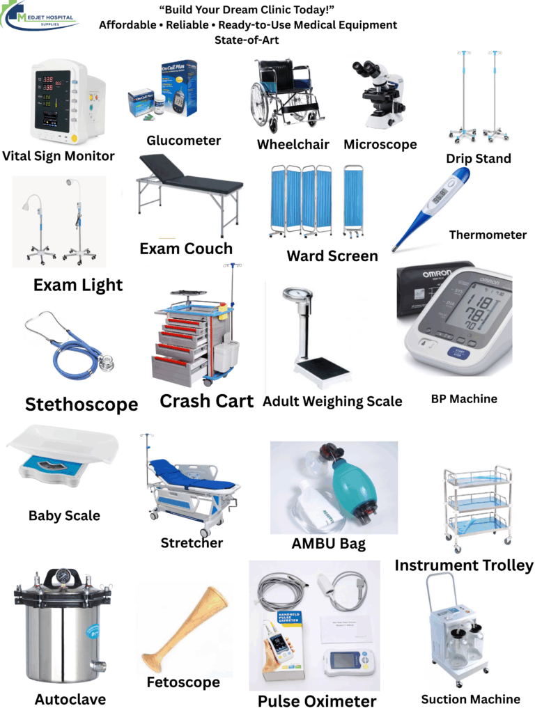 E-commerce has made it easier than ever to buy hospital equipment online. Trusted platforms like Jumia Health, Alibaba, or Medjet’s online store offer a range of products that can be delivered to your doorstep.